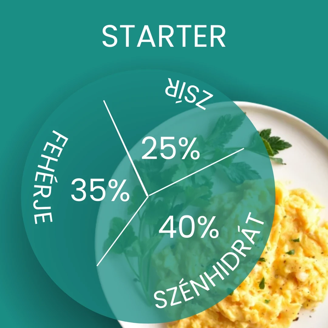 Ha Önnek megfelel az 5 étkezéses napi menü, a STARTER éppen Önnek való. Ha a napi kalóriabevitelt 3 étkezésre szeretné elosztani, válassza a BUILDER változatot.